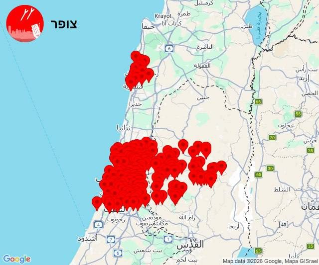 إنذارات «اللون الأحمر» تشمل عشرات البلدات والمناطق في الجليل والكرمل ووادي عارة والجولان فجر 2 نيسان 2026 04/04/2026 - 02:39 ص