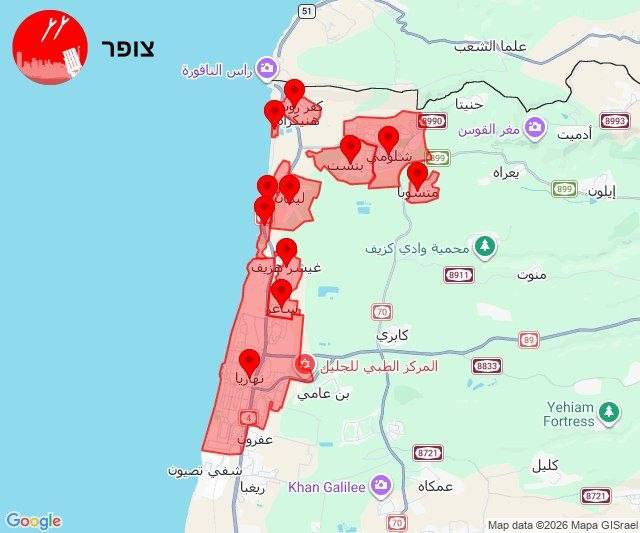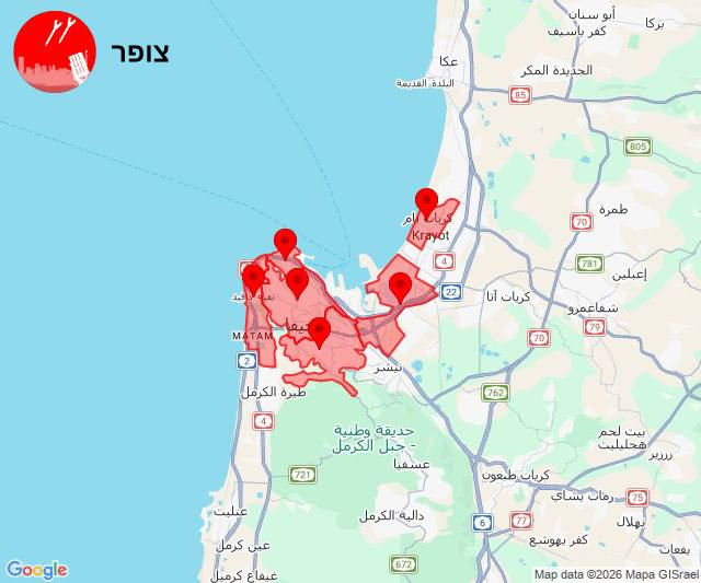 إنذارات صاروخية في منطقة حيفا والكريوت