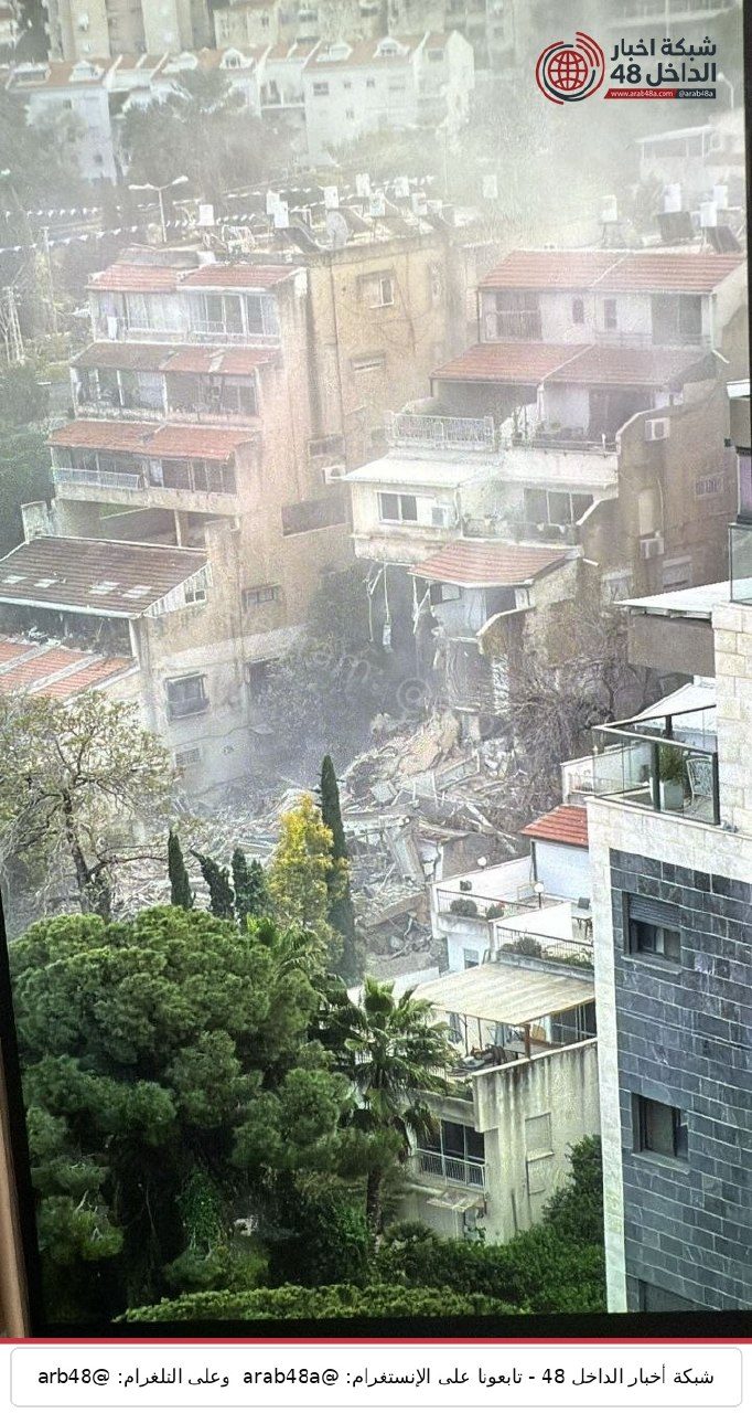 سقوط صاروخ على مبنى متعدد الطوابق في حيفا